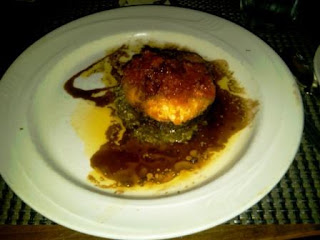 We departed from the first stop and walked for a few blocks while our tour guide shared a couple of stories about the architecture in the neighborhood.. Our next stop was Bilbo Baggins. The meat eaters had smoked chicken quesadillas with a mango black bean salsa and an Asian spring roll. The veggie eaters had a portabella mushroom with tomatoes, pesto, and brie.