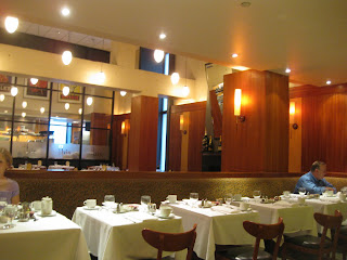 The atmosphere at Bistro Bis is soothing, with warm cherry wood and beautifully upholstered banquettes. I like it immediately, even though they are just opening for dinner so we are basically the sole diners at least for a while. I realize how much a bustling room can add to an atmosphere when you enter an empty room. However, we are greeted by an enthusiastic server, who replies to our compliments on the menu and decor with “that’s why I’ve been here seven years.” I like a server who likes his job.
