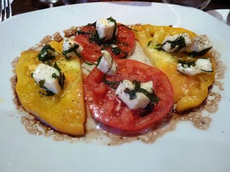 My husband opts for a beautiful Path Valley Heirloom Tomato salad, with marinated buffalo mozarella.