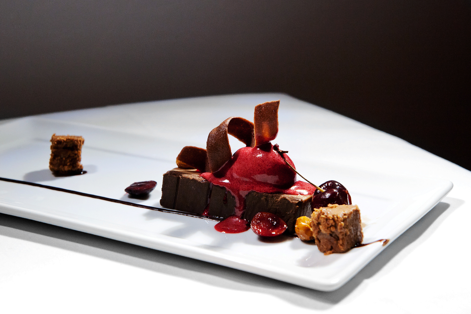 It is getting very late and I can only take a bite of the dessert by Tiffany MacIsaac of Birch and Barley and my favorite Buzz Bakery. It is Gianduja panna cotta with cherries, hazelnut crunch, and chocolate curl. I am actually saddened that I am so stuffed, even though I would have avoided the hazelnuts.