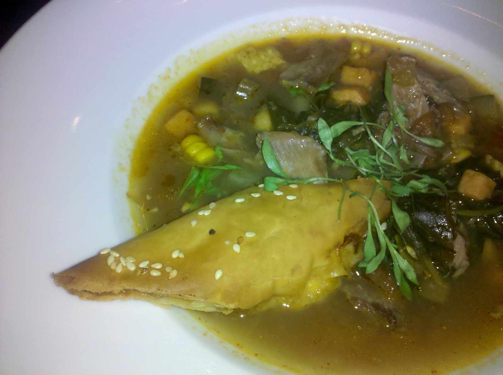 Berber is a spice mix of fried chilies, paprika, garlic, ginger, all spice, cinnamon, cardamom, coriander, cloves, and fenugreek. I must confess that these are spices which I regularly use when I make soup (with the exception of fenugreek). I guess this means I have failed in my mission to try new flavors. It’s a good fail. The broth is surprisingly light and the combination of spices are bold but not overwhelming. Bits of duck meat and vegetables are perfectly apportioned and the borek provides an interlude of crunch.