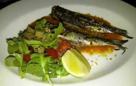 There is a repeated sentiment among a few us toward our dishes. We got what we ordered as described on the menu, but we were expecting just a little bit more from the delivery. This applies to the sardine appetizer and an arugula salad with mission figs and goat cheese, as well as the goat dish and the seafood sausage.